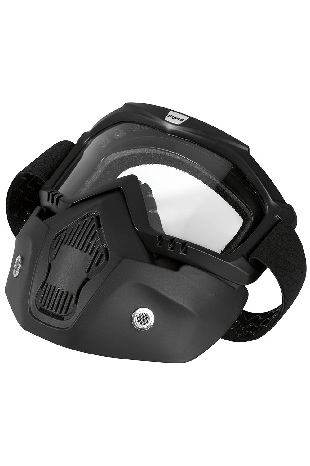 Robuste Schutzbrille mit klarem Antiscratch-Brillenglas. Die abnehmbarer Windmaske schützt vor Wind und Wetter, Staub, Insekten sowie Verletzungen. Elastische Silikon-Bänder ermöglichen eine flexible und sichere Befestigung am Helm.