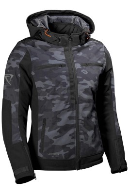 Coole Motorrad-Softshelljacke für Damen mit abnehmbarer Kapuze sowie winddichtem und atmungsaktivem Basiswetterschutz durch Nässeschutzmembrane. Das elastische Softshell bietet einen bequemen Tragekomfort mit toller Bewegungsfreiheit. Auch hervorragend für Wandern, Klettern und andere Draußen-Aktivitäten geeignet.